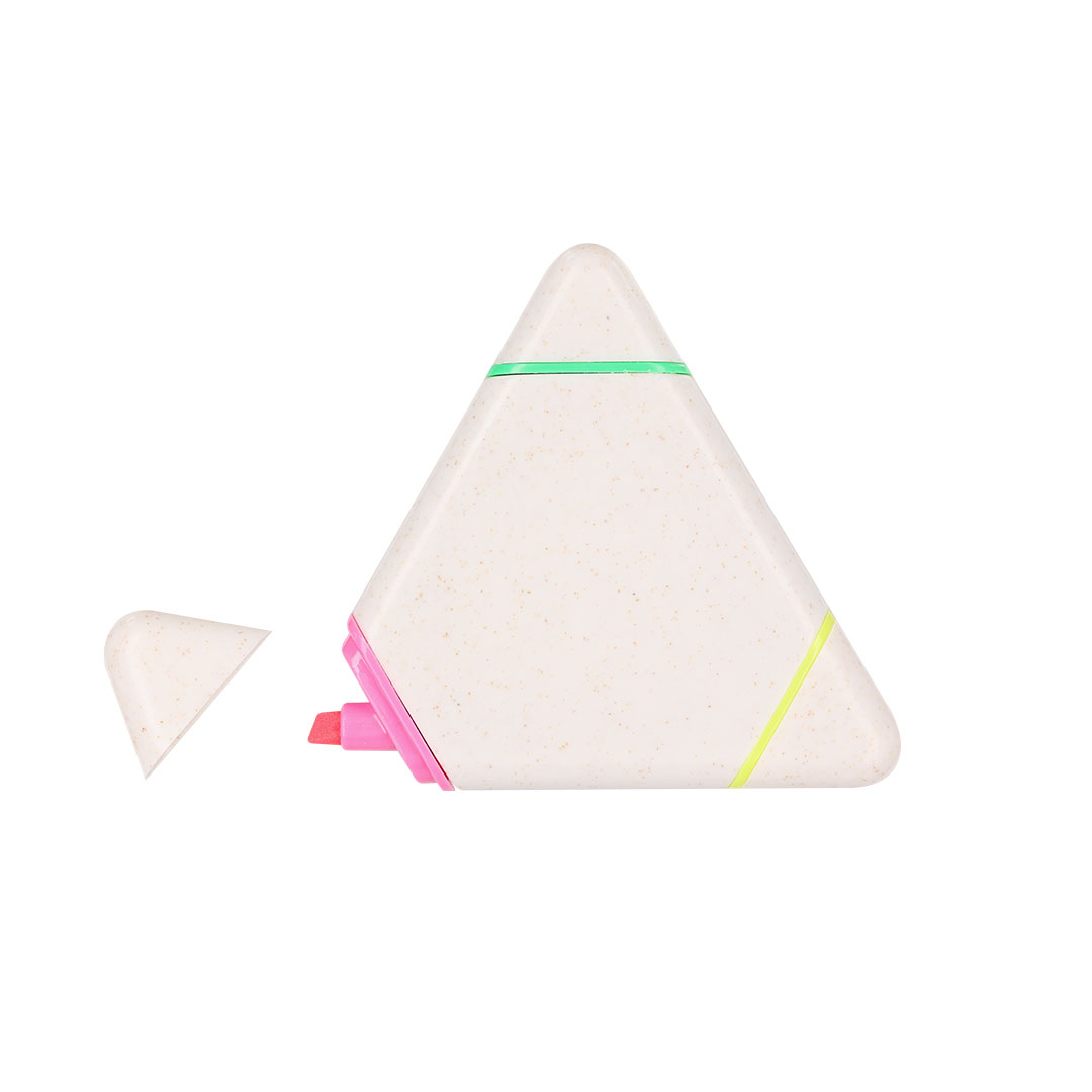 Origineller fluoreszierender Marker in drei Farben aus Weizenstroh. Mit dreieckigem Gehäuse in glatter, glänzender Ausführung, besonders zum farbigen Markieren entworfen. Mit opaken Kappen.Weizenstroh fördert die Verwendung natürlicher Rohstoffe und reduziert so die Schadstoffemissionen.