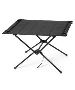 Klapptisch mit widerstandsfähigem, rohrförmigen Metallkörper und einer Oberfläche aus strapazierfähigem 600D-Polyester. Mit verstärkten Nähten und rutschfesten Beinen. Leicht faltbar und kompakt in der Größe, präsentiert in einer individuellen Tasche.