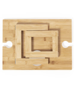 Klappbarer Tisch für Weinliebhaber. Aus Bambus, mit einem Fach für eine 75-cl-Flasche und 2 Glashaltern. Leicht faltbar und kompakt, in einer attraktiven, ökologisch gestalteten Einzelverpackung präsentiert.