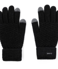 Praktisches Paar Handschuhe für Touchscreen-Geräte. Hergestellt aus warmem, weichem RPET-Polyester-Finish. Touch-Funktion an Zeigefinger und Daumen. Einheitsgröße für Erwachsene, mit RPET-Embleem auf dem Außenetikett.Das RPET-Material wird aus recyceltem Kunststoff hergestellt, um die Wiederverwendung von Kunststoffabfällen zu fördern und die Nachhaltigkeit unseres Planeten zu unterstützen.