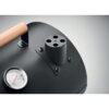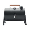 Tragbarer BBQ Grill aus Eisen mit Rauchabzug und Temperaturanzeige. Pulverbeschichteter Korpus. Tragegriff aus Holz.