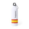 Trinkflasche in spanischem Design und weißem Gehäuse. 800 ml Fassungsvermögen und Aluminiumausführung, mit BPA-freiem Sicherheitsschraubdeckel und Karabiner für den Transport. Präsentiert in einer attraktiven Designbox.
