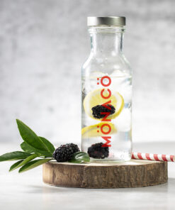 Linie „Natur“ Trinkflasche mit 785 ml Inhalt und Schraubdeckel aus Metall. Hergestellt in Europa und präsentiert in einer Schachtel aus recyceltem Karton mit Made in Europe-Emblem.