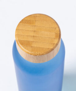 Flasche aus der Naturlinie mit einem Fassungsvermögen von 500 ml, mit Glaskörper, Schraubverschluss aus Bambus und BPA-frei. Erhältlich in einer breiten Farbpalette und präsentiert in einer individuellen Öko-Design-Box.