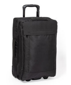 Trolley aus robustem 600D RPET. Hauptfach mit doppeltem Reißverschluss nach TSA-Standards, Transport Security Management, das es den Zollbehörden ermöglicht, den Inhalt des Gepäcks zu inspizieren, ohne die Öffnung zu erzwingen oder das Schloss zu brechen, mit einem speziellen Schlüssel, der der Behörde zur Verfügung steht.Gefütterter Innenraum plus Organizer im mittleren Bereich. Außen mit Fronttasche mit unsichtbarem Reißverschluss und 2 gepolsterten Tragegriffen. Erweiterbarer Metallmechanismus in schwarz, mit komfortablem Tragegriff und 2 Rädern. Außen RPET-Label.RPET-Material besteht aus recyceltem Kunststoff und fördert so die Wiederverwendung von Kunststoffabfällen und trägt zur Nachhaltigkeit des Planeten bei.