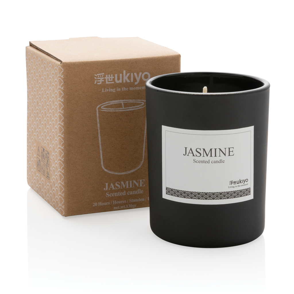 Schaffen Sie Wärme und Gemütlichkeit in Ihrem Zuhause mit dieser kleinen Jasmin-Duftkerze von Ukiyo. Die Duftkerze im eleganten Glas schafft eine ganze besondere Atmosphäre.