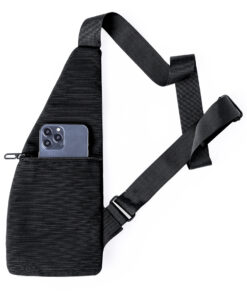 Diese Umhängetasche aus 300D-Polyester bietet mehrere Taschen für eine effektive Organisation. Auf der Vorderseite und an der Seite befinden sich zwei Haupttaschen sowie zwei zusätzliche Taschen auf der Vorder- und Rückseite. Für bessere Sichtbarkeit sorgt ein reflektierender Streifen an der Mitteltasche. Einzeln in einer recycelten Tasche präsentiert.