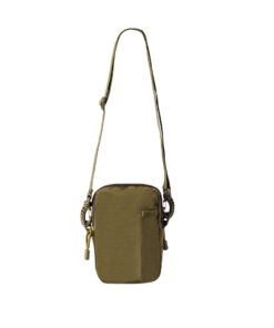 Umhängetasche aus strapazierfähigem 800D-Polyester in Sandbrauntönen. Mit 2 zentralen Taschen, Reißverschluss und Schnellzugriff vorne. Mit verstellbarem Schultergurt und einzeln verpackt in einer recycelten Tasche.