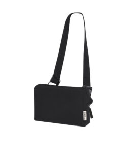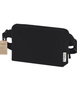 Rechteckige Bauchtasche aus recycelter Baumwolle. Mit zentralem Reißverschlussfach, doppeltem Reißverschluss und verstellbarem Gurt mit passendem Schnallenverschluss. Zudem beinhaltet eine Tasche an der Rückseite. Mit Kennzeichnung für recycelte Baumwolle.