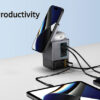 Die All-in-One-Power-Solution. Sacramento ist eine 105W-GaN-Ladestation, die maximale Leistung mit integriertem Komfort verbindet. Mit zwei integrierten, einziehbare 65W-USB-C-Kabel, sodass Sie immer schnell aufladen können – ganz ohne zusätzliche Kabel. Sacramento verfügt zudem über einen USB-A- und einen USB-C-Anschluss, sodass Sie insgesamt vier Output-Optionen zum gleichzeitigen Laden von Laptops, Tablets, Smartphones und mehr haben. Für Ihre kabellosen Geräte ist Sacramento mit einem leistungsstarken 15W-Magnet-Wireless-Charger ausgestattet, der Ihr Smartphone sicher an seinem Platz hält, sowie einem separaten Wireless-Pad, das speziell für kleinere Geräte wie Ohrhörer oder AirPods (max. 5W) entwickelt wurde. Sacramento wird aus RCS-zertifiziertem (Recycled Claim Standard) recyceltem, feuerfestem PC hergestellt. Gesamtanteil an recycelten Materialien: 26 % bezogen auf das Gesamtgewicht des Artikels.