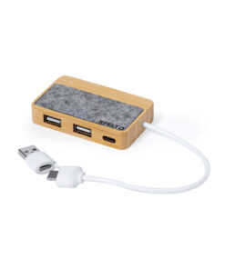 USB 2.0-Anschluss aus Bambus und RPET-Filz. Enthält einenTyp-C-Anschluss und 2 USB-Anschlüsse, mit dualem USB/Typ-C-Eingang. Mit RPET-Plakette. Einzeln verpackt im Kraft-Design-Karton.Der recycelte RPET-Filz ist das Ergebnis der Kombination des Recyclingprozesses von Kunststoffen mit der tausendjährigen Technik der Filzherstellung, was zu einem Öko-Trendmaterial führt, das nicht nur recycelt, sondern auch wiederverwertbar ist.