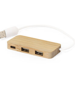 USB 2.0-Anschluss in der Naturlinie und aus Bambus gefertigt. Enthält 1 Typ-C-Anschluss und 2 USB-Anschlüsse. Präsentiert in einer attraktiven Ökodesign-Box.