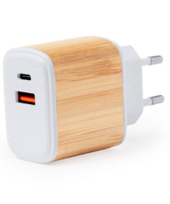 Typ C und USB-Ladegerät mit Schnellladung, aus Bambus und Weizenstroh. Europäischer Stecker und präsentiert in einer attraktiven Kraft-Design-Box.Materialien wie Bambus fördern die Verwendung natürlicher Rohstoffe und reduzieren die Schadstoffemissionen. Es stammt von einer sehr widerstandsfähigen und vielseitigen Pflanze mit schnellem Wachstum und Regeneration, was es zu einer ausgezeichneten Alternative zu traditionellem Holz macht.Weizenstroh fördert die Verwendung natürlicher Rohstoffe und reduziert so die Schadstoffemissionen.