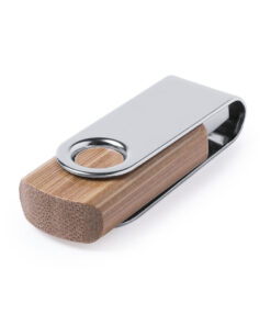 USB-Stick mit 16 GB Kapazität. Gehäuse aus Bambus mit Metallclip und Drehmechanismus. Präsentiert in einer individuellen Schachtel aus Recyclingkarton.