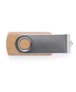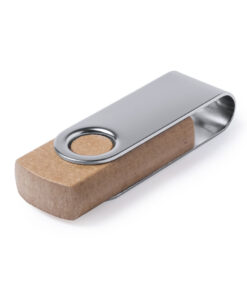 16-GB-USB-Stick mit Drehmechanismus, Gehäuse aus recyceltem Karton und Metallclip. Präsentiert in einer individuellen, recycelten Pappschachtel.