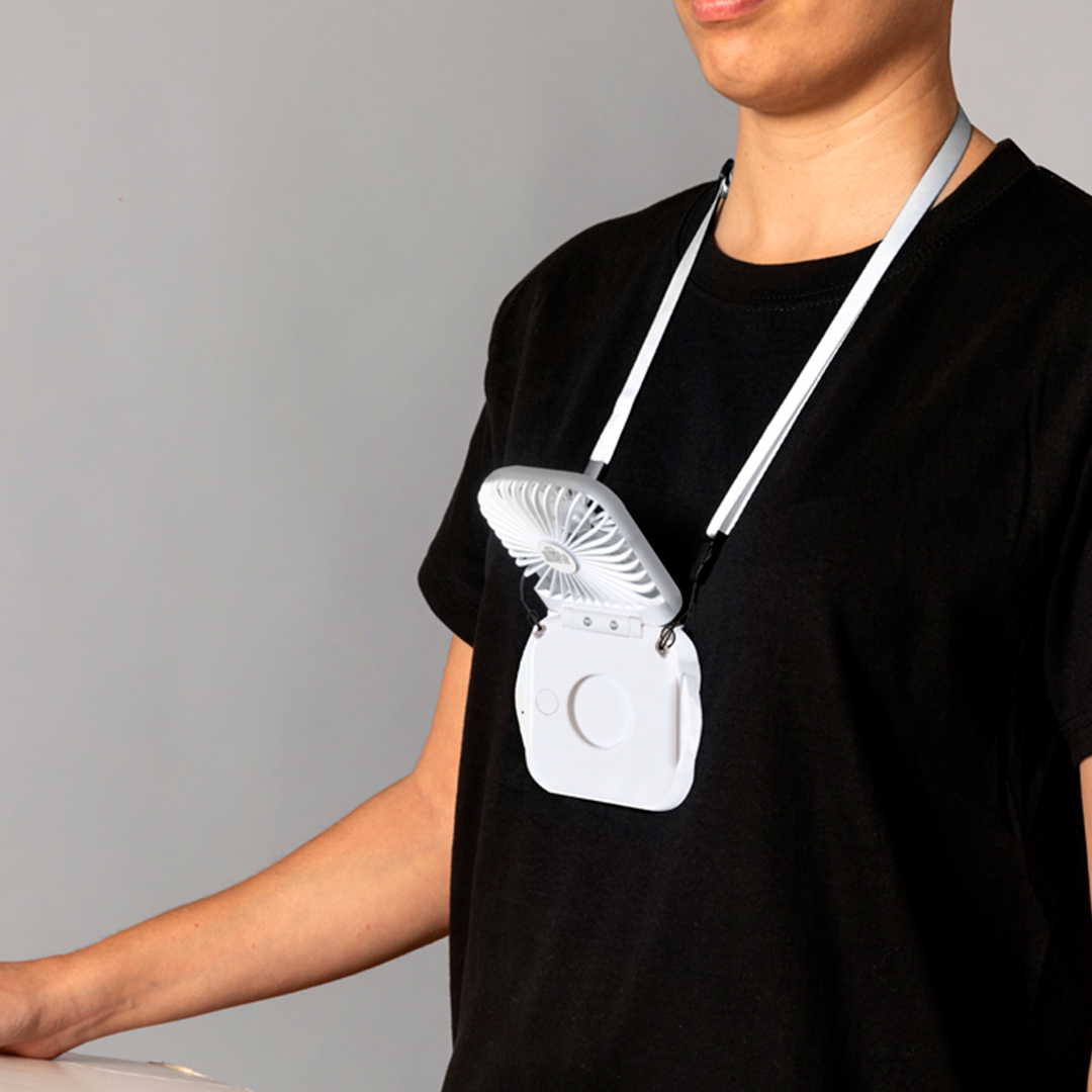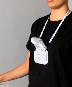 Tragbarer Ventilator aus robustem ABS. Mit drei Geschwindigkeiten und integrierter Smartphone-Halterung. Stromversorgung durch einen 300-mAh-Akku mit Ladezustandsanzeige und Micro-USB-Kabel im Lieferumfang enthalten. Einzeln verpackt in einer Kraft-Design-Box.