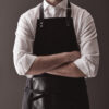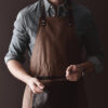 Stilechte und klassische Schürze aus dickem Baumwoll-Canvas mit diskreten Details aus PU. Verstellbare Schnalle oben und große Tasche vorne. Eine Schürze mit langer Lebenszeit, die mit der Zeit nur schöner wird. 400gr/m²