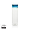 Elegante und minimalistische Wasserflasche aus 100% RCS zertifiziert recyceltem PET. Mit dieser praktischen Wasserflasche haben Sie auch unterwegs immer genügend Flüssigkeit zur Hand, egal zu welchem Anlass. Große Öffnung für eine einfache Reinigung. Gesamter recycelter Inhalt: 98% bezogen auf das Gesamtgewicht des Artikels. BPA-frei. Nur für Kaltgetränke geeignet & nur Handwäsche. Inhalt: 600ml.