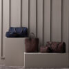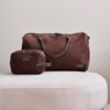 Klassische und dennoch moderne Kosmetiktasche aus Wildlederimitat mit Details aus PU. Mit dieser Tasche können Sie Ihre Hygieneartikel bequem zu Hause und auf Reisen stilvoll aufbewahren. Die Tasche hat eine handliche Größe und ist dank eines Riemens mit Messingdetails an der kurzen Seite leicht zu tragen.