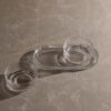 Ein Tapas-Set mit zeitlosem Design und klassischen, klaren Linien. Perfekt für alle Gelegenheiten, bei denen Sie kleine Gerichte, Snacks oder andere Beilagen stilvoll und elegant servieren möchten. Das Set besteht aus zwei Schalen und einem Tablett, die zusammen oder separat verwendet werden können. Hergestellt aus Kalk-Natron-Glas. Die Schalen fassen 250ml. Die Schalen sind spülmaschinenfest, ein eventuell nachträglich angebrachter Druck hält einer Spülmaschine jedoch natürlich nicht lange stand.