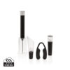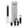Mit dem Vino Connoisseur Set haben Sie alles was Sie zum Öffnen, Servieren und Lagern Ihres Lieblingsweins brauchen. Der Öffner, der Folienschneider, der Stopfen mit Vakuumpumpe sowie der Ausgießer mit Belüfter sind in einer schicken Box verpackt