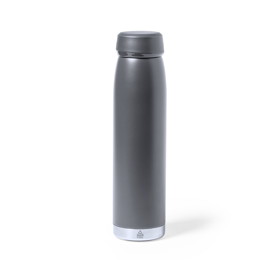 Thermoflasche mit 380 ml Fassungsvermögen, hergestellt aus recyceltem, doppelwandigem Edelstahl, mit passendem Schraubverschluss und silbernem Boden. Erhältlich in einer großen Auswahl an Satinfarben, BPA-frei und in einer individuellen Box im Kraftpapier-Design präsentiert. Stahl ist eines der gefragtesten Materialien und kommt fast überall vor, von Alltagsprodukten bis hin zu Großkonstruktionen. Mit unzähligen Eigenschaften, darunter Langlebigkeit und einer hohen Wiederverwendbarkeit, ist es eine vielgeschätzte Alternative für nachhaltige Lösungen. Bei richtiger Behandlung können neue Ressourcen von unbegrenztem Nutzen gewonnen werden.