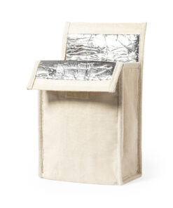 Thermotasche aus widerstandsfähigem 330g / m2 Baumwollmaterial. Hauptfach mit Klettverschluss und isothermischem Aluminium-Innenraum. Fassungsvermögen 2,3l.