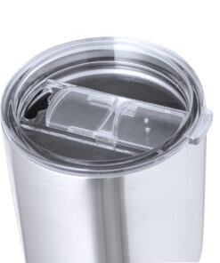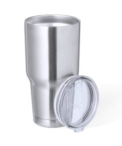 Thermobecher aus recyceltem doppelwandigem Edelstahl mit einem Fassungsvermögen von 800 ml. Mit Spender im Deckel, leicht zu öffnen, BPA-frei, in silberner Ausführung. Es ist ideal für Ihren Schreibtisch, Tisch oder jede andere Oberfläche, auf der Sie in Ruhe Ihr Lieblingsgetränk genießen können. Mit Recycled Stainless Steel-Logo. Stahl ist eines der gefragtesten Materialien und kann fast überall gefunden werden, von Alltagsprodukten bis hin zu großen Konstruktionen. Mit unzähligen Eigenschaften, unter denen die Haltbarkeit und der hohe Wiederverwendungsgrad hervorzuheben sind, ist es eine geschätzte Alternative zu Nachhaltigkeitslösungen. Richtig behandelt, ermöglicht es neue Ressourcen, die unendlich genutzt werden.