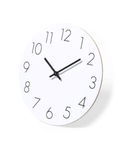 Wanduhr aus MDF-Holz, mit weißem Zifferblatt. Präsentiert in einer individuellen Box mit Kraftpapier-Design. Batteriebetrieben (1xAA nicht im Lieferumfang enthalten).
