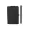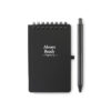Wasserabweisender Notizblock mit Cover aus PP und Stift. Spiralbindung. 50 Blatt liniertes Mineralpapier 120 g/m². Elastisches Verschlussband und Stiftschlaufe. Blaue Tinte.