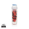 500ml Tritan Flasche mit Früchte-Aromafach. Bereichern Sie Ihr Wasser mit Vitaminen und einer Menge Geschmack durch das einfache Hinzufügen von frischen Früchten im Aromafach. Dieses Fach kann durch die Zugabe von Eiswürfeln auch als Kühlfach verwendet werden. Nur Handwäsche.