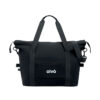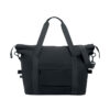 Weekender aus recycelter Pre-Consumer-Baumwolle (70%) und recyceltem Polyester (30%) mit Futter aus 210D RPET-Polyester. Fronttasche, Tasche mit Reißverschluss, abnehmbarer und verstellbarer Schultergurt und gepolsterter Boden. Trolley-Halterung.
