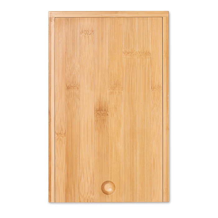 Wein und Käse Set. Beinhaltet ein Käsemesser, einen Käsehobel, ein Kellnermesser und einen Flaschenverschluss. Edelstahl. Lieferung in einer Geschenkschachtel aus Bambus. Bambus ist ein natürliches Produkt, es kann daher zu leichten Abweichungen in Farbe, Dekor und Maßen kommen.