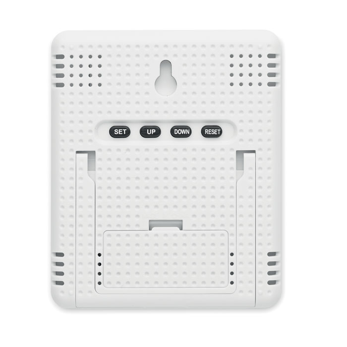 Wetterstation mit Bambus-Front. Mit Zeit-, Temperatur-, Luftfeuchtigkeit- und Kalenderanzeige. Exkl. 2 AAA-Batterien. Bambus ist ein natürliches Produkt, es kann daher zu leichten Abweichungen in Farbe, Dekor und Maßen kommen.