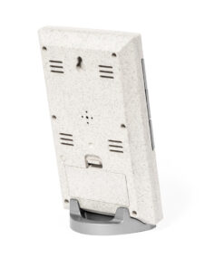 Wetterstation aus Weizenstroh, mit Thermometer und Hygrometer. Zeit-, Kalender-, Alarm- und Wochentagsfunktionen, gut ablesbar auf dem hintergrundbeleuchteten Display. Mit Sockel/Halterung und Haken zum Aufhängen. Batteriebetrieben (2xAAA, nicht im Lieferumfang enthalten) und in einer attraktiven Kraft-Design-Box präsentiert. Gebrauchsanweisung in Englisch und Spanisch.Weizenstroh fördert die Verwendung natürlicher Rohstoffe und reduziert so die Schadstoffemissionen.