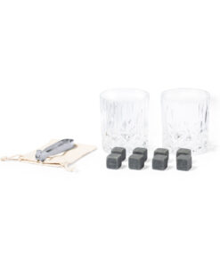 Whisky-Set im eleganten Bambus-Etui mit gestanzter Innenseite. Enthält 2 x 320ml Kristallgläser, Pinzette und 8 wiederverwendbare Natursteinwürfel, im Baumwollbeutel. Präsentiert in einer individuellen Kraftbox.Die wiederverwendbaren Eiswürfel bestehen aus natürlichem Speckstein, auch bekannt als Speckstein oder Speckstein, der das Getränk kalt hält, ohne seine Eigenschaften zu verändern, indem er seinen Inhalt nicht mit Wasser verdünnt, und seinen ursprünglichen Geschmack beibehält.