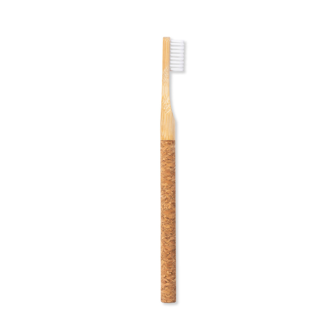Linie Natur Zahnbürste. Mit einem Griff aus Naturkork und einem Korpus aus Bambus, der die Verwendung von natürlichen und nachhaltigen Rohstoffen fördert.