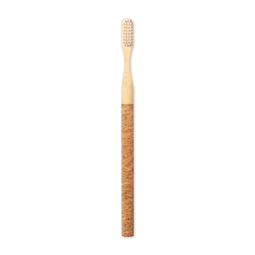 Linie Natur Zahnbürste. Mit einem Griff aus Naturkork und einem Korpus aus Bambus, der die Verwendung von natürlichen und nachhaltigen Rohstoffen fördert.