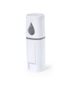 Fantastischer Zerstäuber für die Tasche. Das erfrischende und feuchtigkeitsspendende elektrische Spray erzeugt einen leichten Nebel, der durch Schieben der Schutzkappe auf die Haut gesprüht wird. Nachfüllbarer 15-ml-Behälter mit Schraubverschluss, Füllstandsanzeige und elegantem lila Licht. Verspiegelter Deckel. Stromversorgung durch 250-mAh-Akku, inkl. Kabel. Einzeln verpackt.