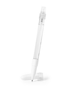 Hygienischer Stift mit integriertem wiederauffüllbarem Spray und Schutzhaube. Aus dauerhaftem, glänzendem ABS und mit blauer Tinte. Sprühkapazität 10ml. Flüssigkeit nicht inbegriffen. Erhältlich in weiß.