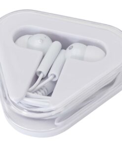 Die Rebel Ohrhörer sind einfache Ohrhörer, die mit jedem Standard-Audiogerät mit einer 3,5-mm-Audiobuchse verwendet werden können. Die Ohrhörer werden in einem dreieckigen Etui mit Kabelaufwicklung aus recyceltem Kunststoff geliefert, das sie gut vor äußeren Beschädigungen schützt.