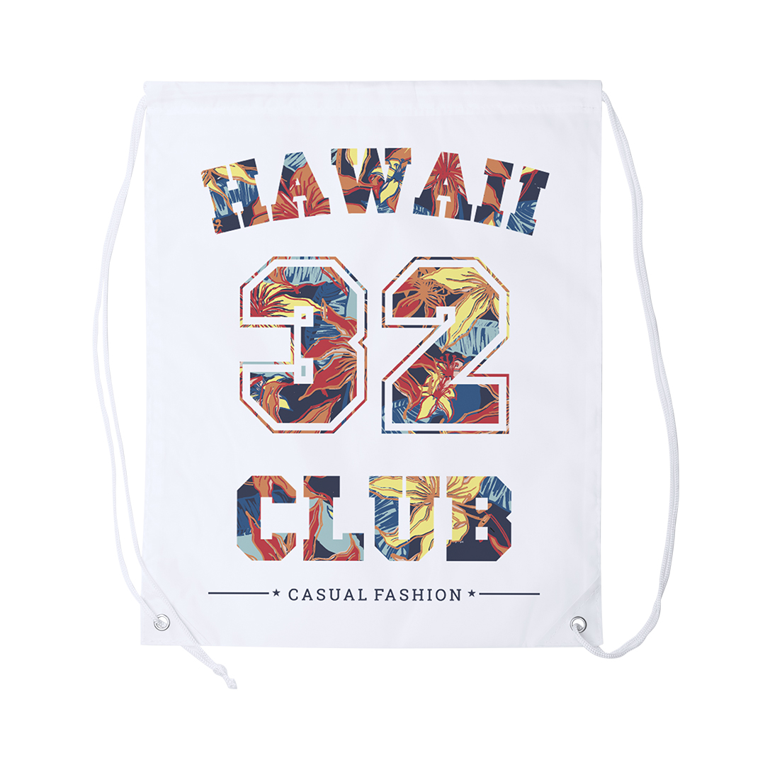 Rucksack mit Kordelzug aus weichem Polyester in einer breiten Farbpalette. Mit schwarzen, selbstsichernden Schnüren, verstärkten Kunstlederecken in passender Farbe und starken Metallringen. Farbe weiß ist speziell für Sublimationsdruck geeignet.