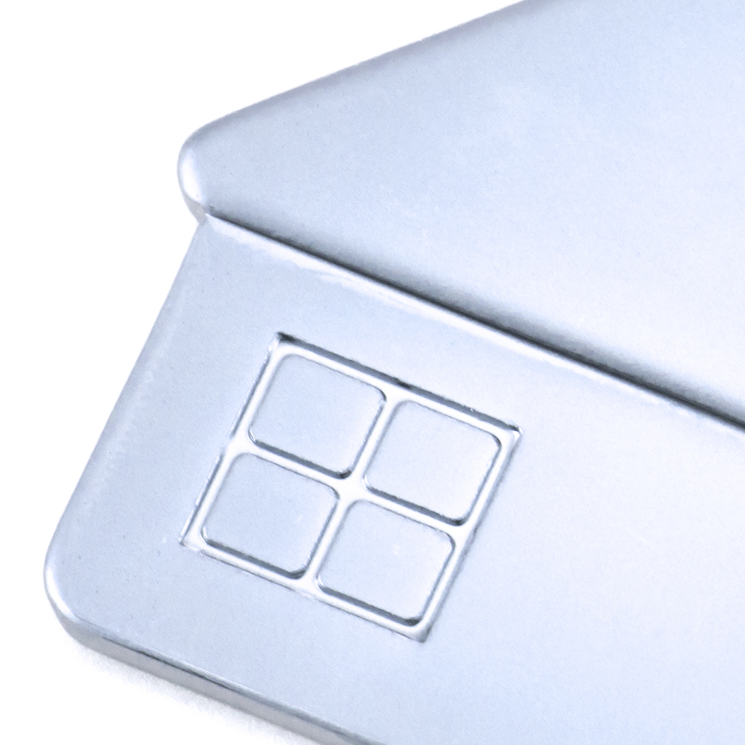 Schlüsselanhänger aus Metall mit tollem Haus-Design in eleganter, matter Ausführung – speziell für den Laserdruck entwickelt.