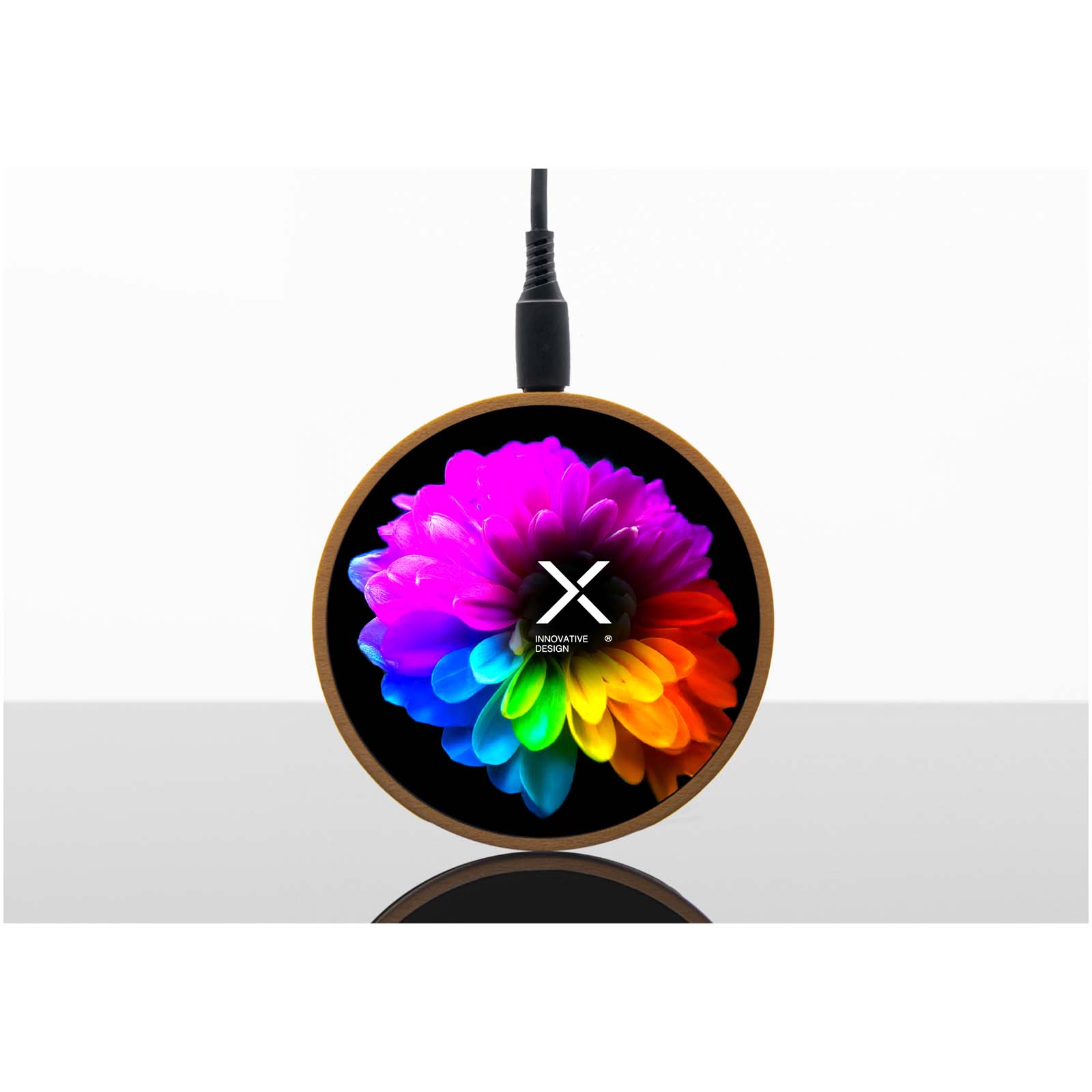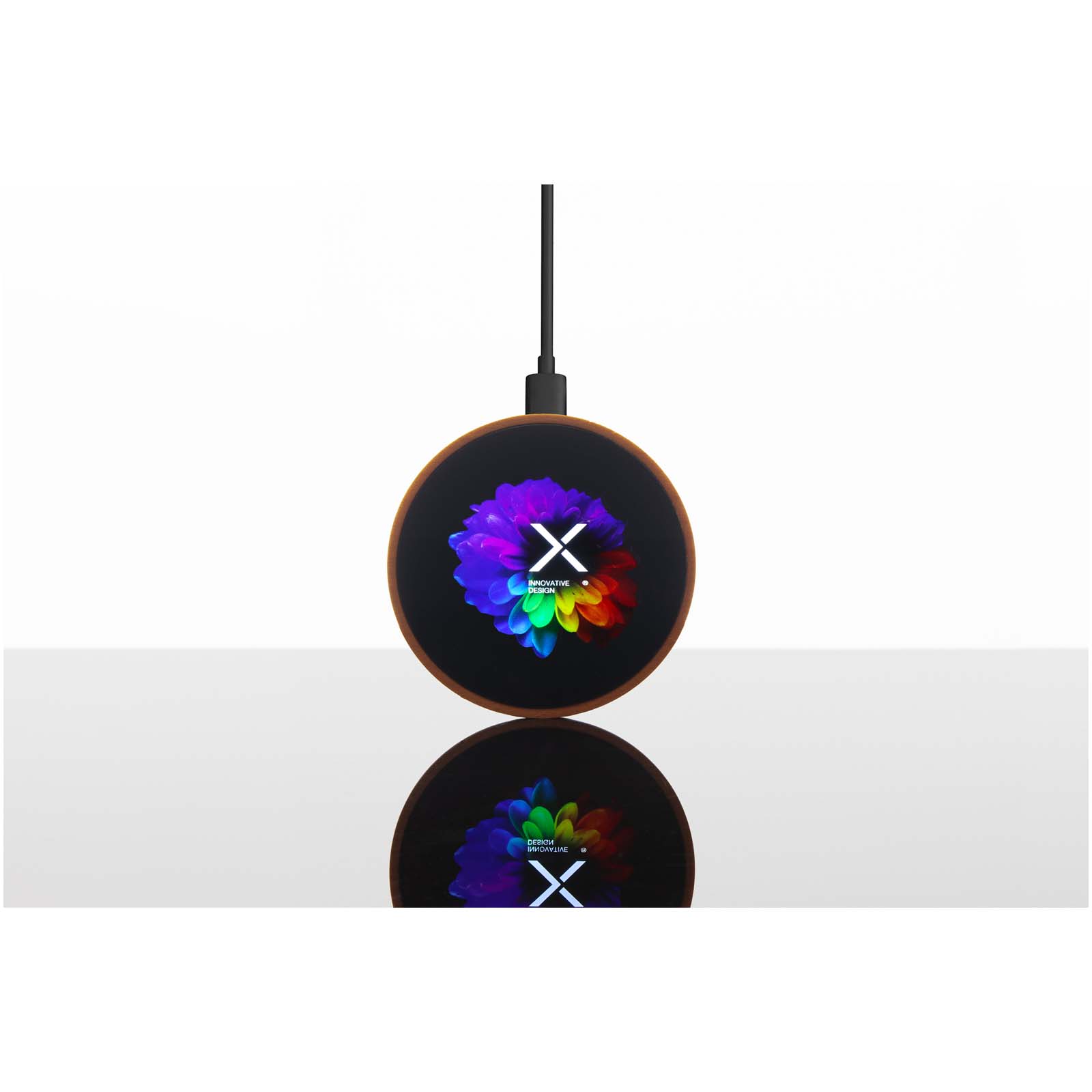 SCX.design W13 kabellose Ladestation aus Holz mit Leuchtlogo braun