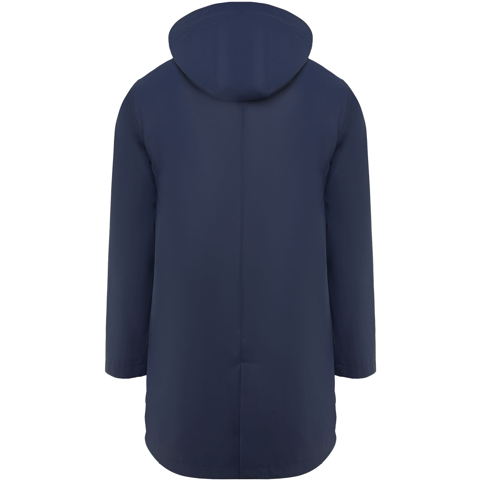 Wasserdichter Regenmantel. Kapuze mit Visier. Hitzeversiegelte Reißverschlüsse und Nähte. Kontrastierende Details in Schwarz. Zwei Seitentaschen mit Reißverschluss. Schlitz am hinteren Saum. Herausnehmbares Etikett. Wasserdicht. Das Modell ist 185 cm groß und trägt Größe M.