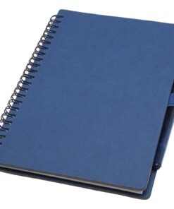 Wiederverwendbares A5 Hardcover Notizbuch und Stiftset aus Steinpapier. Das Notizbuch hat einen Einband aus Karton, abgerundete Ecken und besteht aus 32 linierten Seiten aus 120 g/m² Papier. Steinpapier ist 100 % holzfrei und der Produktionsprozess verbraucht weniger Energie als recyceltes oder neues Zellstoffpapier. Auf der Rückseite befindet sich eine Tasche für ein schwarzes Reinigungstuch (im Lieferumfang enthalten). Der radierbare Stift besteht aus recyceltem Kunststoff mit transparentem Schaft, weißem Radiergummi auf der Oberseite und einfarbigem Griff. Tintenfarbe: Schwarz. Schreiblänge: 250 Meter. Schreibspitze: 0,7 mm.