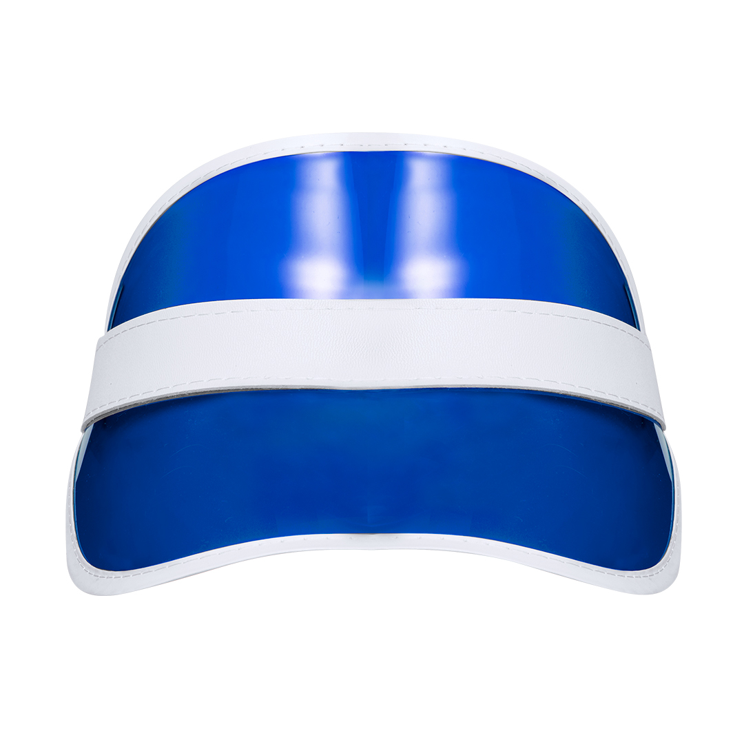 Sonnenblende, PVC-Visier mit UV-Schutz. In transparenten Farben, kombiniert mit weißen Farbdetails. Verstellbares, elastisches Band und in einer breiten Palette von kombinierten Farben erhältlich.