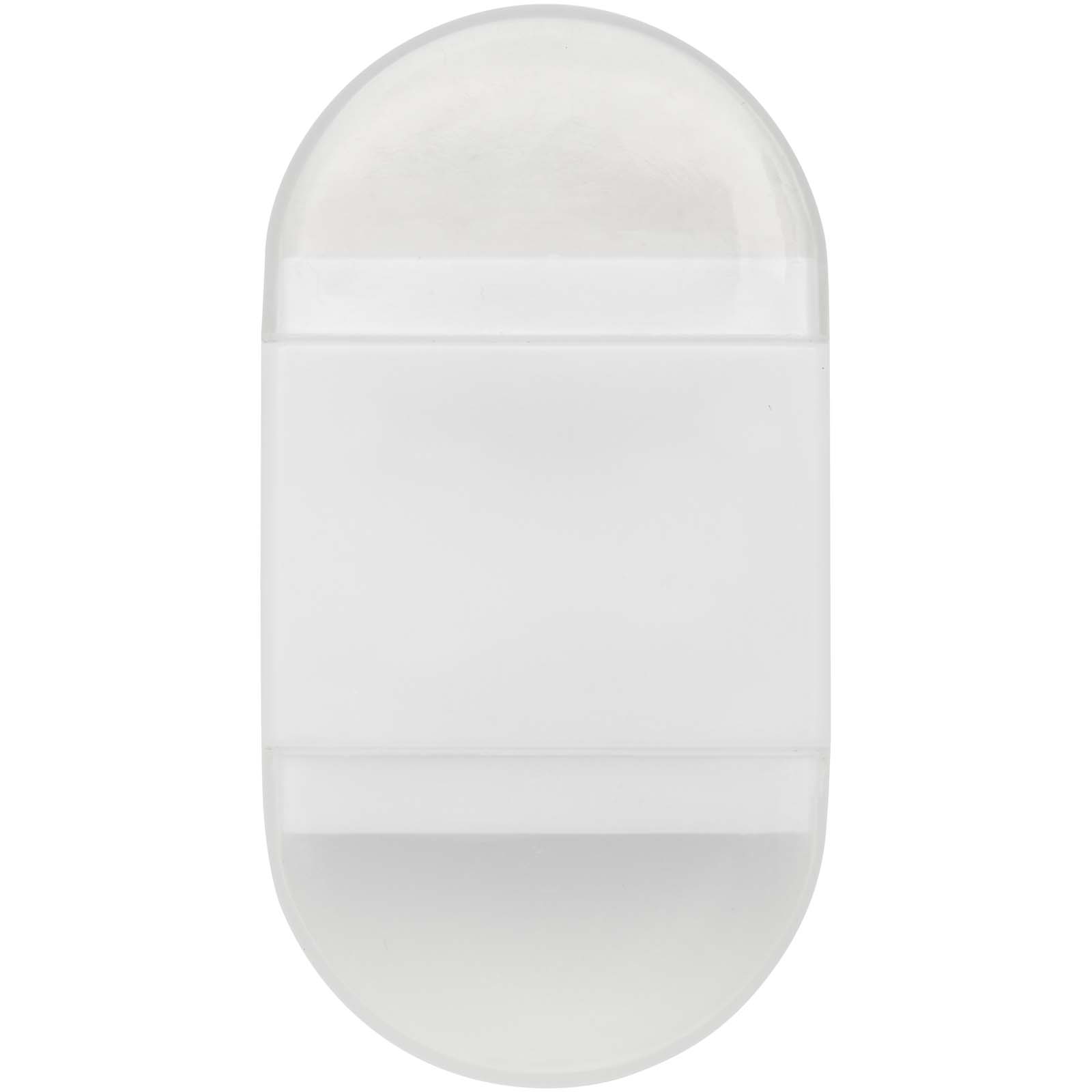 Bleistiftspitzer mit Radiergummi mit durchsichtigen Kappen auf beiden Seiten. Größe 6,2 x 3,3 x 1,6 cm.
