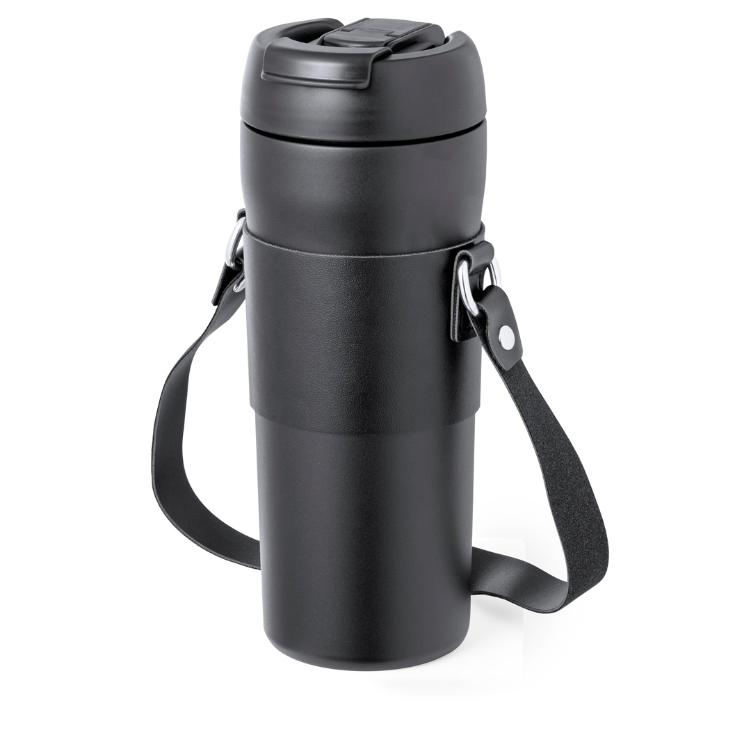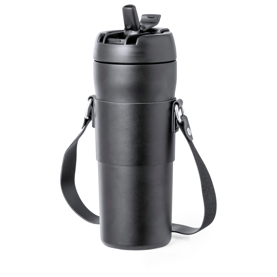 Trendige Thermoskanne mit einem Fassungsvermögen von 700 ml, aus Edelstahl mit Doppelwand. Einzigartiger Schraubverschluss mit Spender im Deckel und Düse für Strohhalm. Mit Tragegriff und passendem PU-Ledergriff. Präsentiert in einer individuellen Kraft-Designbox.