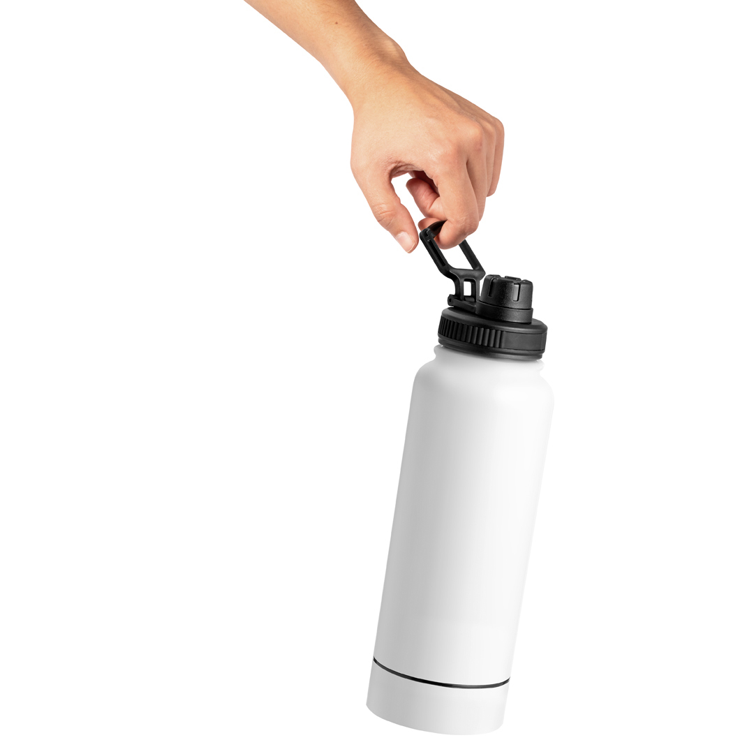 Thermoskanne mit Doppelschicht und 1 l Fassungsvermögen, hergestellt aus Edelstahl. Schwarzer Schraubverschluss mit Spender und Tragegriff. Darüber hinaus verfügt der Sockel über ein Schraubenfach zur Aufbewahrung von Kleinteilen. Erhältlich in stilvollen Farben. Präsentiert in einer Kraft-Design-Box.